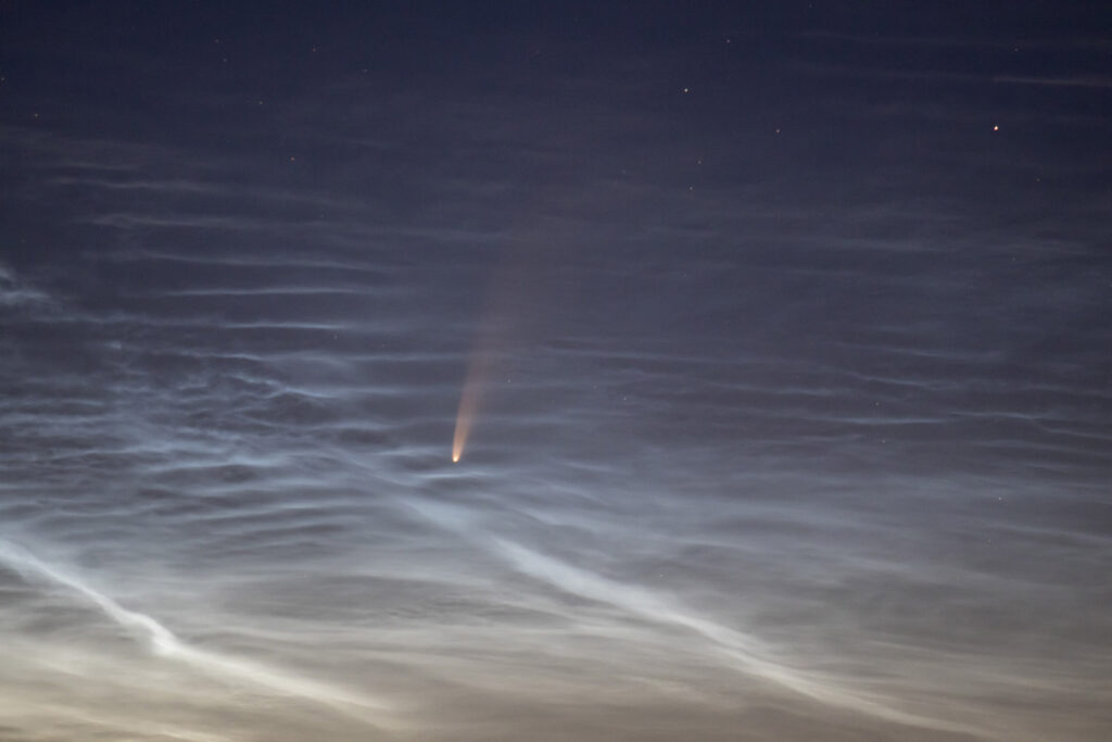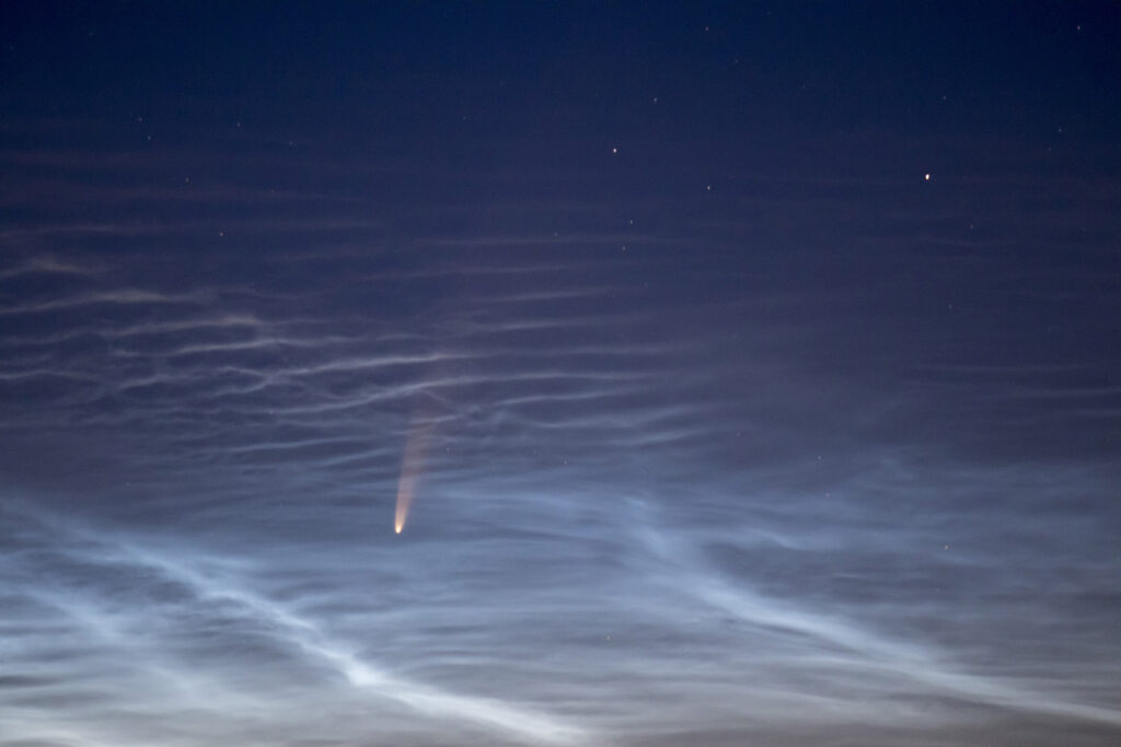 Včasih je potrebno vstati zgodaj, da lahko vidiš takšno lepoto. Komet C/2020 F3 (NEOWISE) – viden s prostimi očmi, še lepši skozi daljnogled, skupaj na nebu z NLCji, v bližini še Venera. Nepozabno!