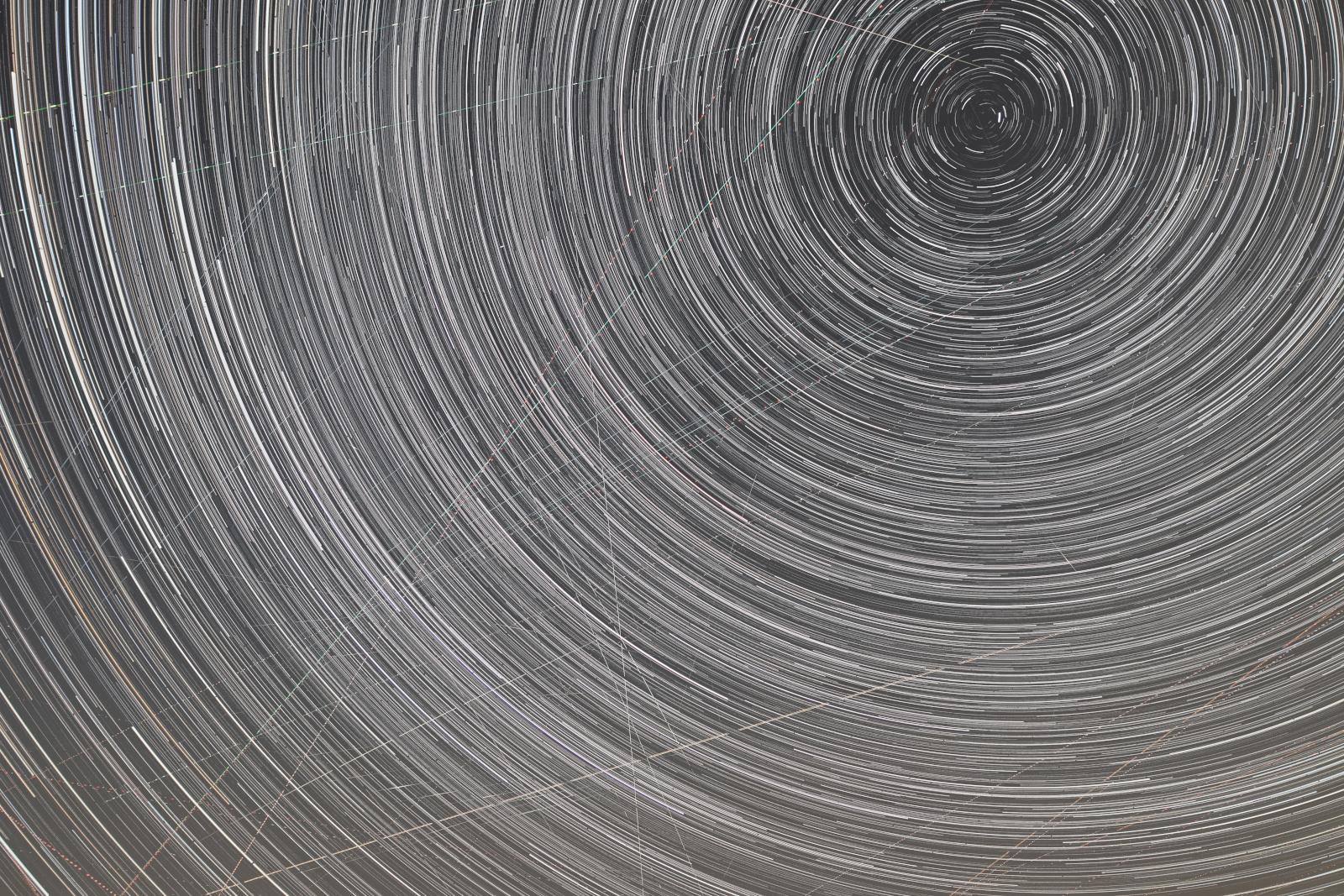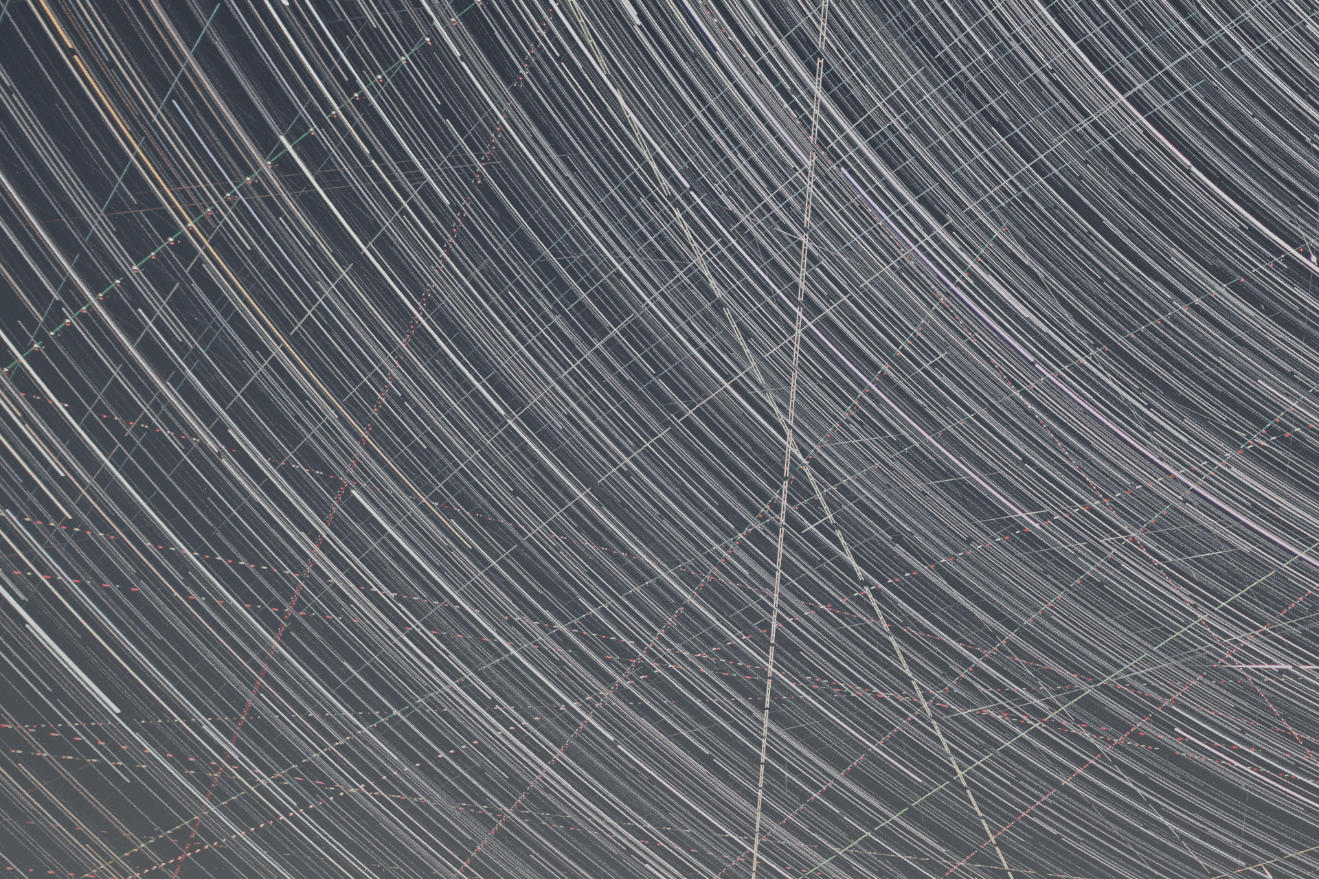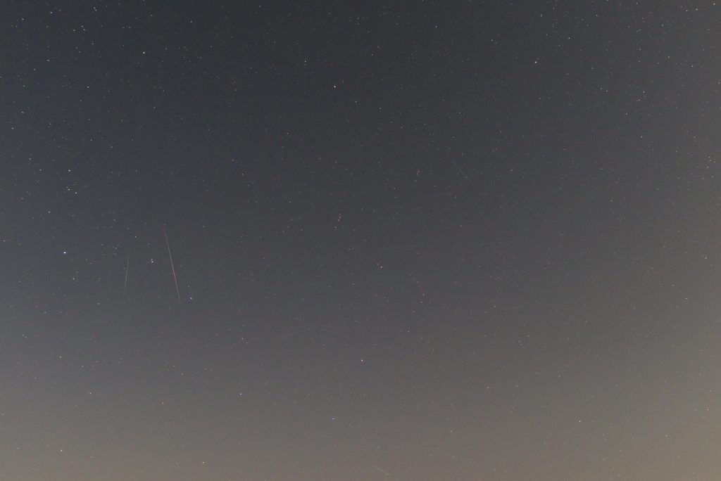 Objavljam še seštevke slik med snemanjem Perzeidov. V obeh primerih je zajeto dogajanje v cca 2.5h. Prva slika iz noči 12-13.8, druga je izsek iz prve slike – da se bolj podrobno vidi, koliko satelitov in letal preleti nebo, tretja slika pa iz noči 13-14.8., s Severnico v kadru. Le peščica črt so meteroji (2-3 na sliko!), vse ostale ne-krožne črte so sledi satelitov in letal. V prihodnje, bo tega le še več.