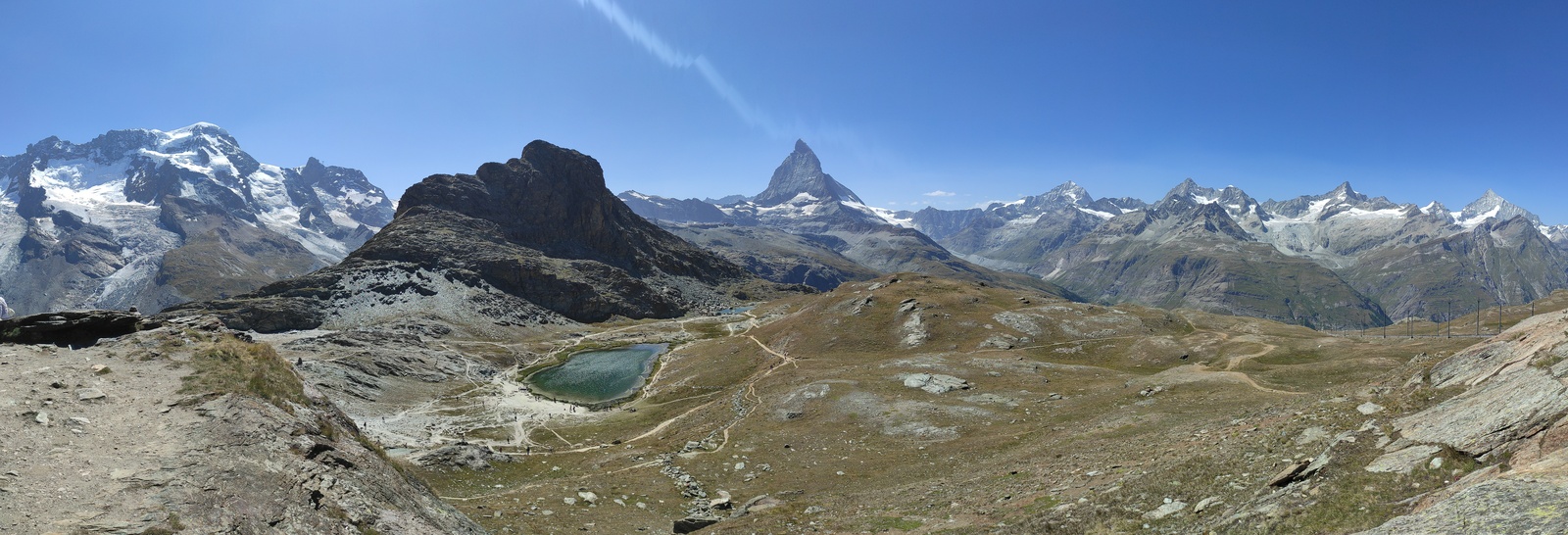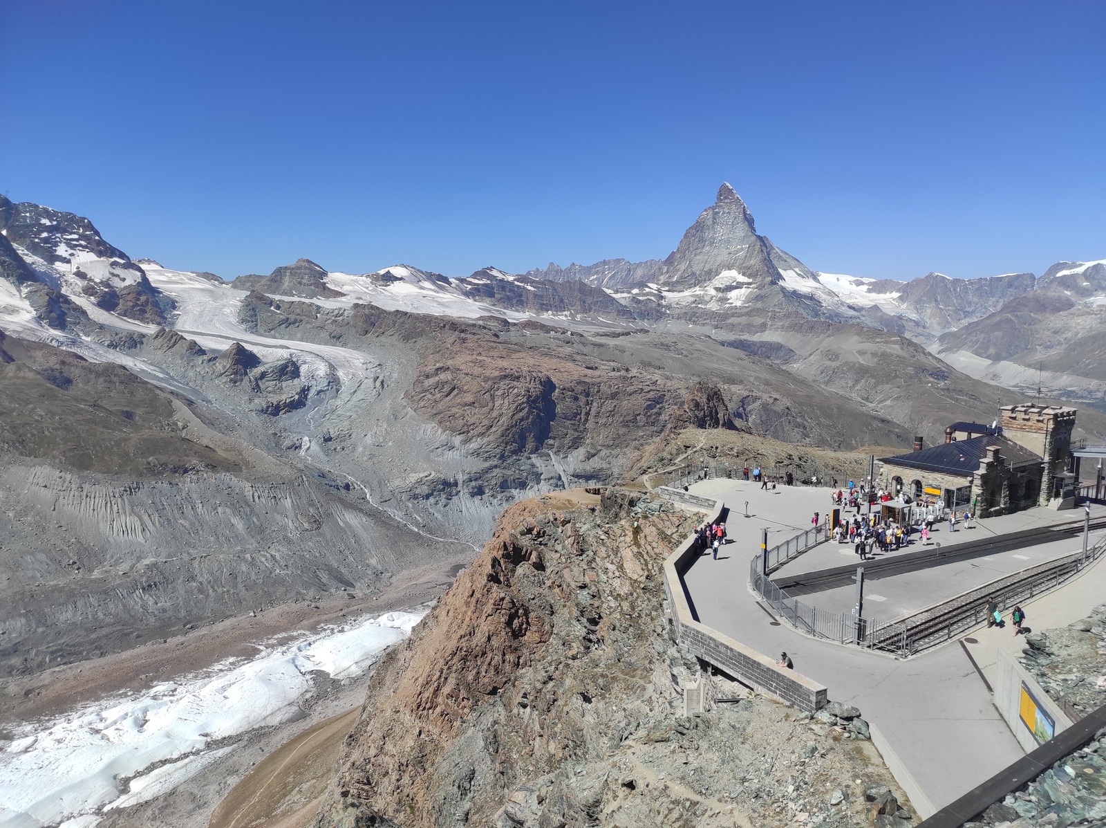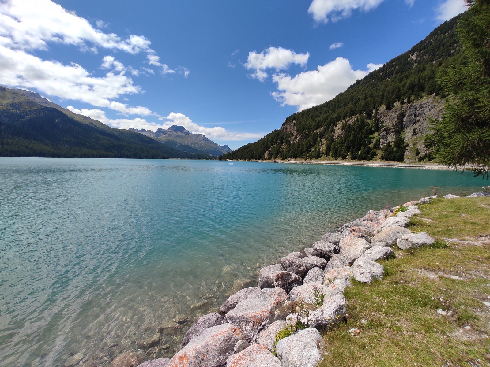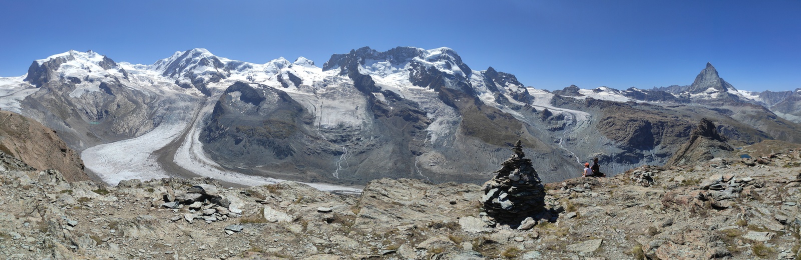 Pot nas je nato peljala v Švico preko prelaza Berninna, Sankt Moritza do jezera Silvaplana. Zelo lepo jezero, namočili smo noge, za kaj več pa je bilo zunaj premrzlo. Nato smo šli preko prelaza Julier do jezera Cauma. Najpogumnejši člani družine so tu uspeli zaplavati. Nato čez Oberalppass do Andermatta in naprej preko prelaza Furka. Sledil je še vzpon preko prelaza Grimsel in pot do Gelmerbahn-a (zobata železnica, ki gre naravnost na hrib po naklonu več kot 45˚) ter peš okrog slikovitega Gelmersee-ja. Nato ogled soteske Aareschlucht-a ter pot do Brienz-a. Tu smo vsi na kratko zaplavali v svežem Brienzersee-ju. Na kratko smo si ogledali še Staubbachfall in Lauterbrunnen-a. Sledil je celodnevni obisk Männlichen (z gondolo do vrha in peš nazaj proti spodni postaji) s čudovitimi pogledi na severno steno Eiger-ja, Moncha in Jungfrau-a. Zadnji pa je bil obisk Zermatt-a in vzpon z zobato železnico na Gornergrat, ki nudi čudovit razgled na okoliške gore – Matterhorn in Monte Rosso z ledenikom.