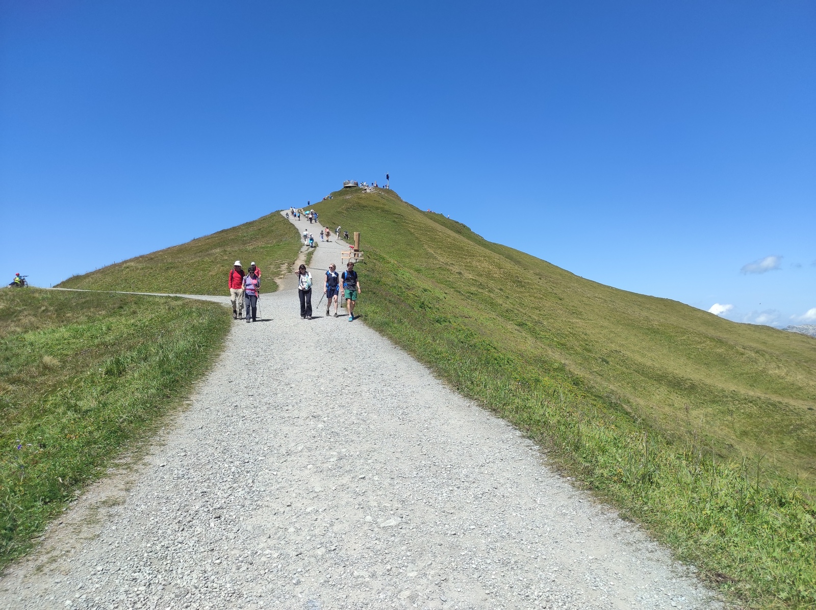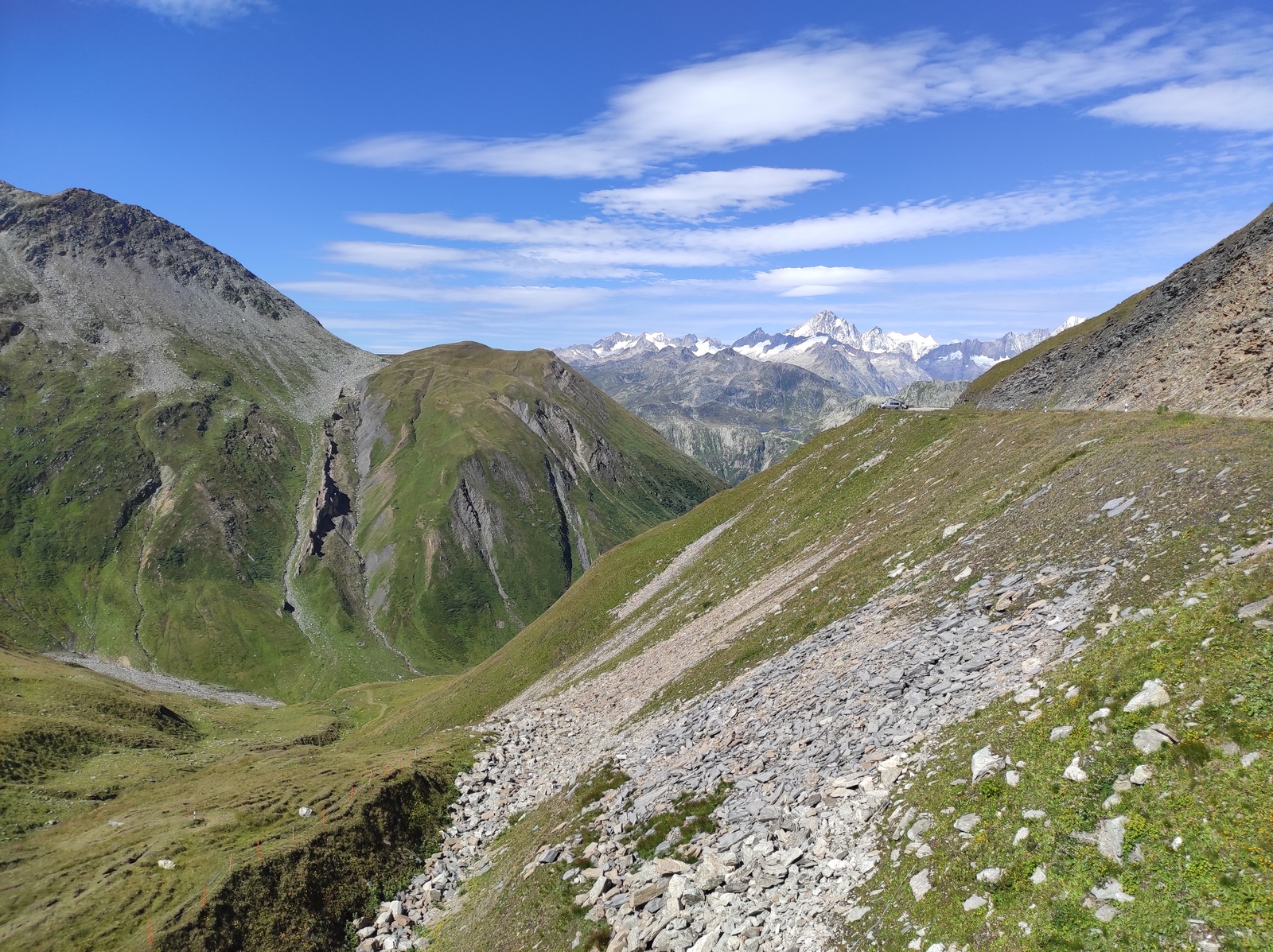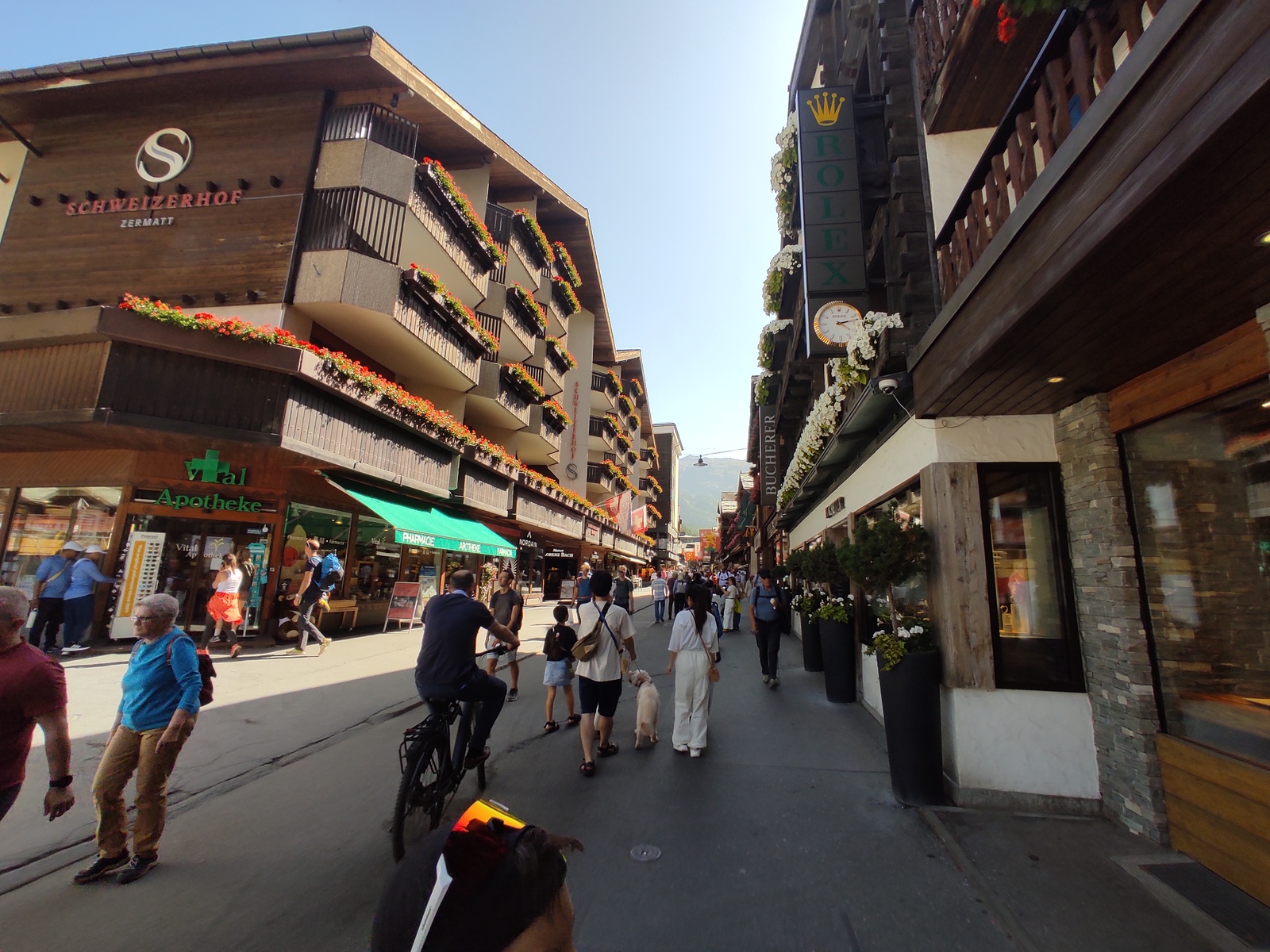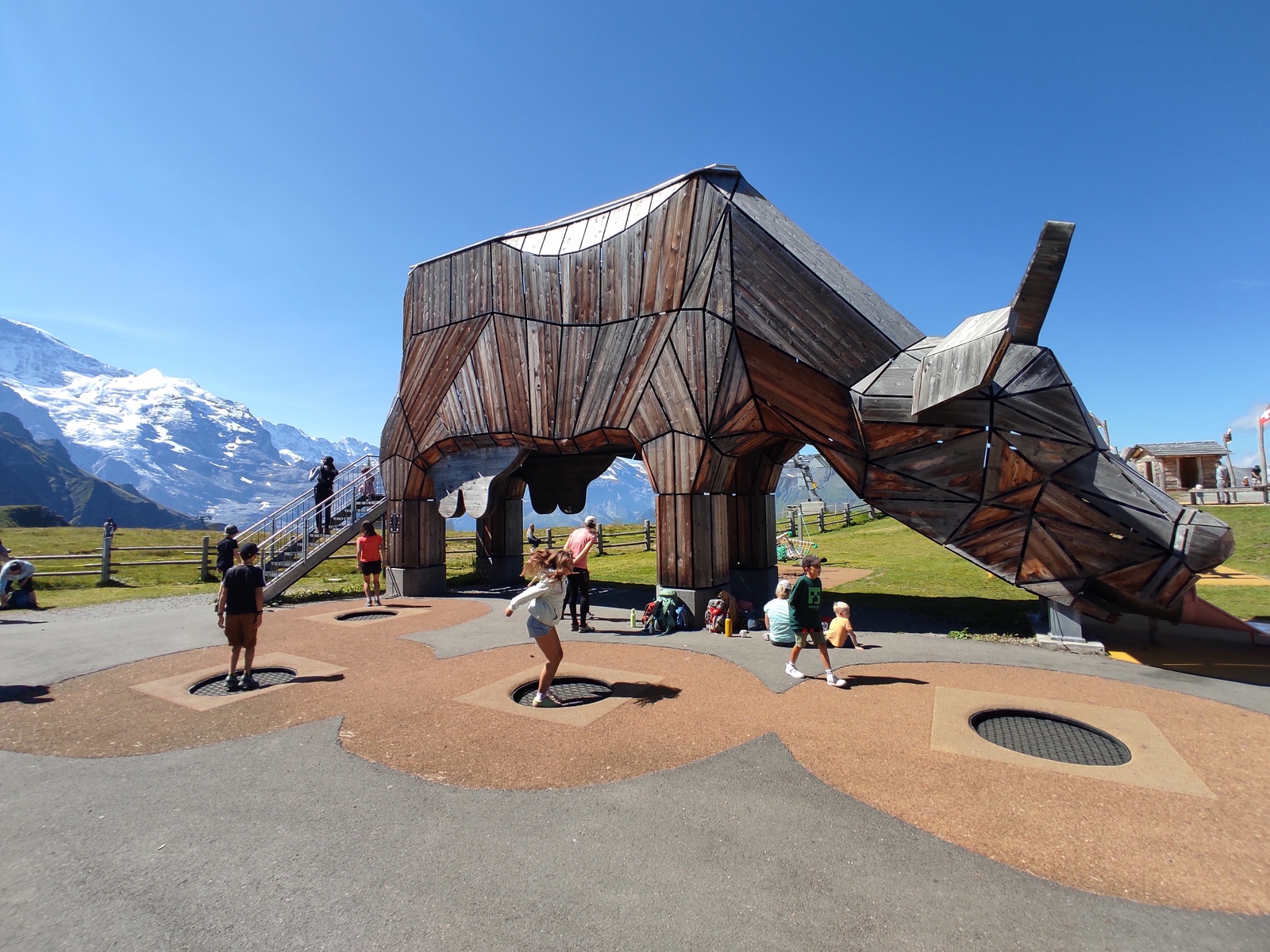 Pot nas je nato peljala v Švico preko prelaza Berninna, Sankt Moritza do jezera Silvaplana. Zelo lepo jezero, namočili smo noge, za kaj več pa je bilo zunaj premrzlo. Nato smo šli preko prelaza Julier do jezera Cauma. Najpogumnejši člani družine so tu uspeli zaplavati. Nato čez Oberalppass do Andermatta in naprej preko prelaza Furka. Sledil je še vzpon preko prelaza Grimsel in pot do Gelmerbahn-a (zobata železnica, ki gre naravnost na hrib po naklonu več kot 45˚) ter peš okrog slikovitega Gelmersee-ja. Nato ogled soteske Aareschlucht-a ter pot do Brienz-a. Tu smo vsi na kratko zaplavali v svežem Brienzersee-ju. Na kratko smo si ogledali še Staubbachfall in Lauterbrunnen-a. Sledil je celodnevni obisk Männlichen (z gondolo do vrha in peš nazaj proti spodni postaji) s čudovitimi pogledi na severno steno Eiger-ja, Moncha in Jungfrau-a. Zadnji pa je bil obisk Zermatt-a in vzpon z zobato železnico na Gornergrat, ki nudi čudovit razgled na okoliške gore – Matterhorn in Monte Rosso z ledenikom.